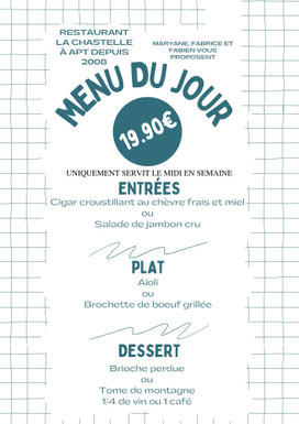 A deux pas du centre ville d'Apt et à moins de 15 minutes de Gordes "plus beau village du monde" le restaurant La Chastelle vous accueille dans un cadre chaleureux et feutré, Une ambiance agréable pour déjeuner ou dîner tranquillement...